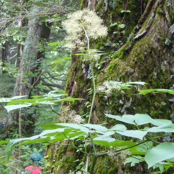 樹林帯の中をひたすら下る。2208mの三角点には三角点の標識が建っている。 時々ブナの大木がある。ブナ立尾根だから当然か。 |